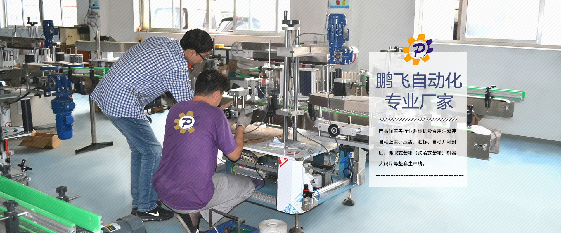 煙臺鵬飛自動化設備有限公司 坐落于美麗的海濱城市--煙臺,是一家專注于中低速貼標機、食用油灌裝生產線等設備的研發、設計、生產、銷售、售后服務于一體的設備制造商。長期以來,建立了一套完整的服務體系,公司擁有先進的生產技術,精湛的生產工藝,嚴格的質量管理形成了強大的競爭優勢,其產品暢銷全國十幾個省、市、自治區,并遠銷中亞五國埃及、緬甸、新加坡、智利等國家。